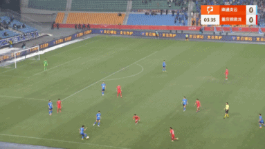 上半场比赛结束,重庆铜梁龙客场暂时3-1领先南通支云。
