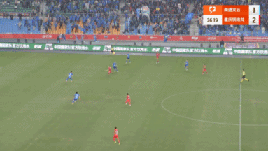 南通扳回一城!第34分钟,南通的角球开出,贾博琰门前转身凌空抽射,皮球击中横梁下檐反弹得分,南通支云1-2重庆铜梁龙!↓