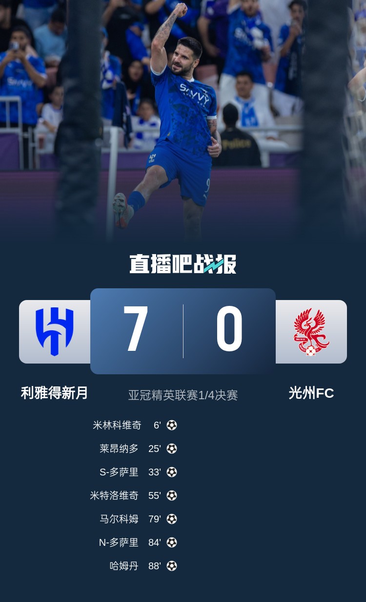 新月亚冠7-0光州FC😱记者:如果中超队去踢 会不会也挡不住😢 2025-04-28 15:37:17 足球专题 26℃ 0 04月26日讯 亚冠精英联赛1/4决赛,利雅得新月7-0横扫光州FC晋级四强。赛后,泰山跟队记者牛志明发文:“如果中超队去踢,会不会也挡不住😢” 关键词:光州会不会 上一篇 瑞士媒体:国米预计300万欧回购A-斯坦科维奇,多队对他感兴趣 下一篇 比赛前瞻|广西平果国晶客战定南赣联赛前发布会 相关推荐 达万:国脚归队后我们捏合很快 球队距离榜首触手可及 好老婆!弗兰克执教初期收入不高,妻子在经济方面给了很大支持 西海岸发售本赛季半年卡,散客套票分625元、700元、910元三档 【赛前海报】浙江俱乐部绿城vs上海海港 江上渔者 曼晚:曼城抵达迈阿密备战世俱杯,驻地林恩大学距皇马基地30分钟 世俱杯附加费?GMS:切尔西5000万欧买吉滕斯被拒,多特要7000万